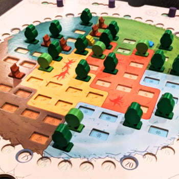 Destaque-se ao escolher as cartas de biomas certas para desenvolver diferentes áreas de seu planeta a cada rodada. Cada decisão afeta a fertilidade e o valor das regiões não escolhidas.